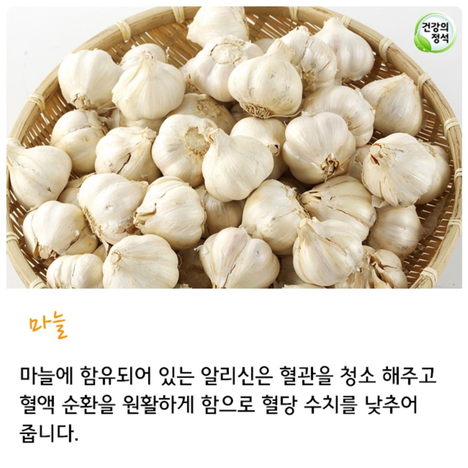 마늘의 알리신 성분은 인슐린의 분비를 촉진해 혈당을 낮추는 데 도움이 된다고하더라고요.