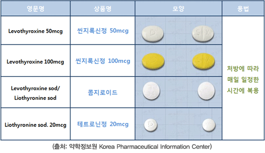 갑상선 호르몬 치료는 갑상선 호르몬을 충당하여 갑상선 기능을 개선해주는 방법이라고 합니다. 대개 합성 갑상선 호르몬인 Levothyroxine이 처방 되며, 일반적으로 약물 복용은 일생에 걸쳐 지속 된다고 합니다. 약물 복용 전에는 정기적인 혈액검사를 받아야 하며, 약물 복용 중에도 정기적인 혈액검사를 받아야 하더라고요.