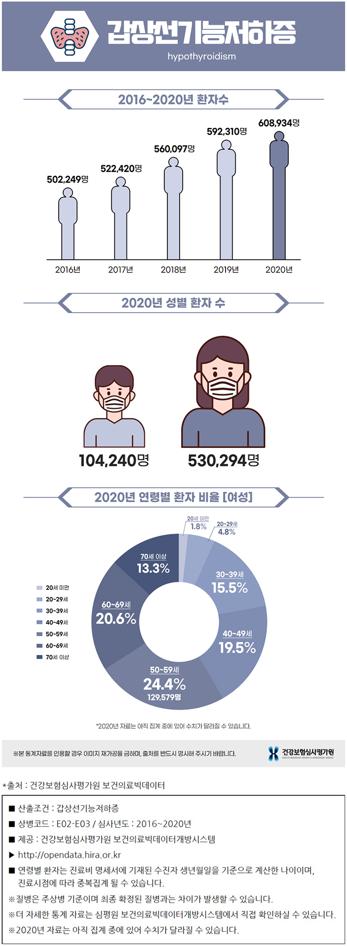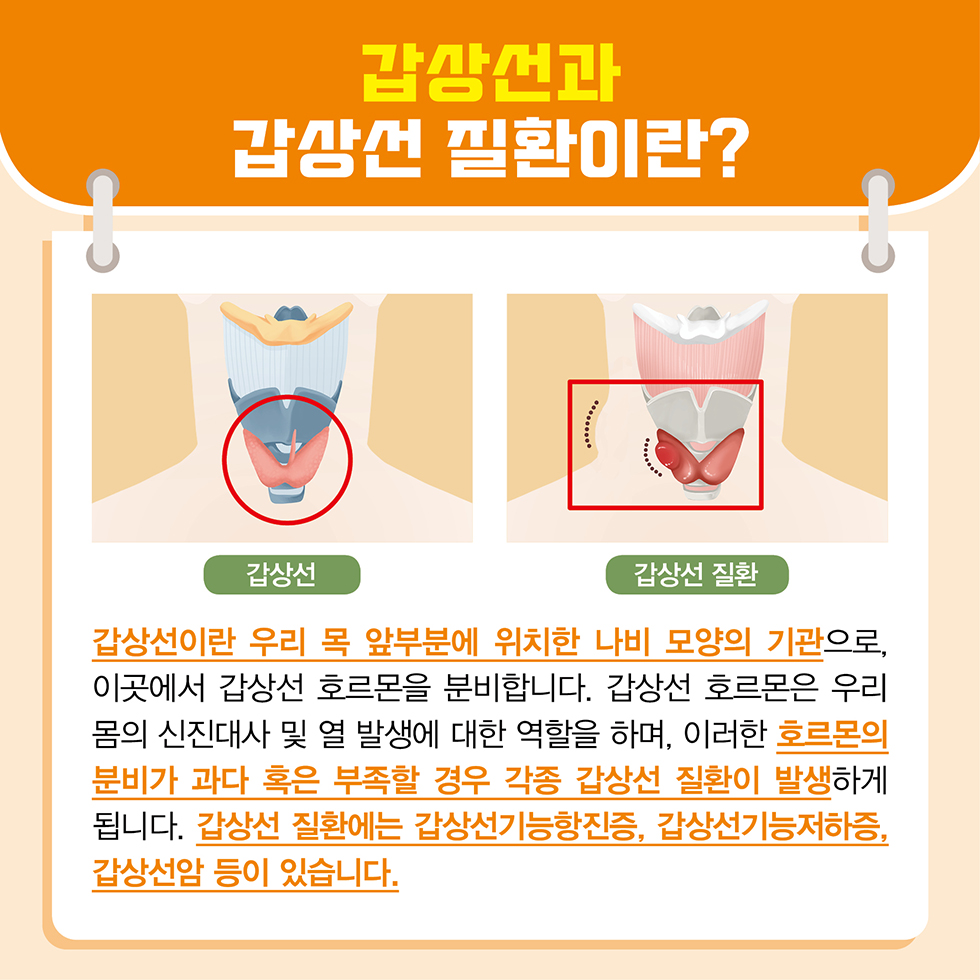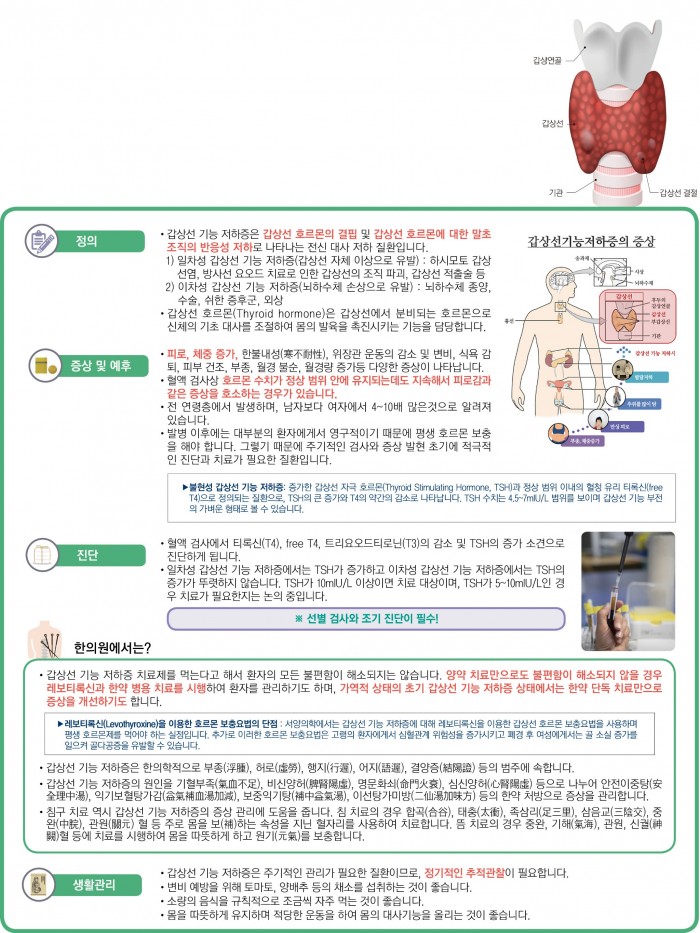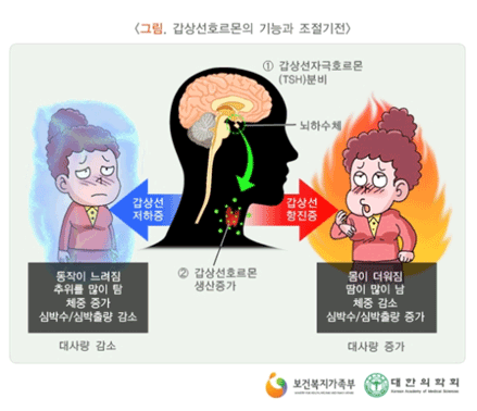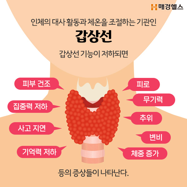 갑상선 기능 저하증은 말 그대로 갑상선의 기능이 떨어진 것을 말하더라고요. 갑상선은 우리 몸의 항상성인 체온을 균일하게 유지하는 기능을 담당하는 기관입니다.몸 속 가지가지 생체 화학반응을 촉진하는 갑상선호르몬을 분비함으로써 항상성을 연속하고 신진대사를 순조롭게하더라고요. 갑상선의 기능이 쇠퇴하여 호르몬 분비가 되지 못하면 신진대사가 순조롭지 않아 피로감을 경험한거나 체온유지에 고충이 발생합니다.
