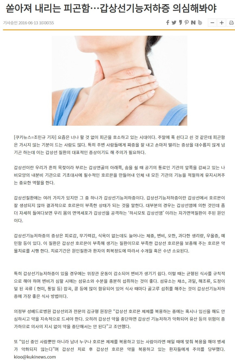 현재까지 갑상선 기능 저하증 증상 같이 살펴보았더니요. 이 증상들은 오랜기간동안 서서히 진행이 되므로 느끼는는 것이 어려울 수 있고 위의 증상 중 거의은 예사로 피곤하면 발생하는 증상과 같기 때문에 단순 피곤함이라고 생각해서 넘기는 경우가 넉넉합니다