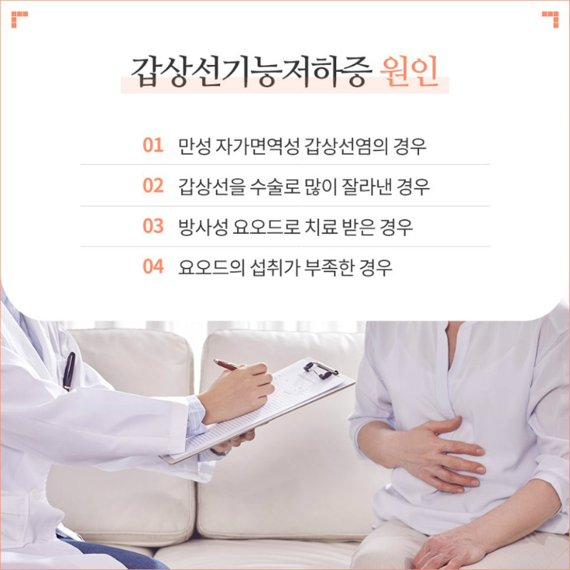 좋은 식습관은 갑상선 기능 저하증을 관리하는 데 굉장히 중요 해요. 갑상선 기능 저하증 환자는 칼슘, 비타민 D, 아이오딘 등의 영양소를 가득히 섭취해야 합니다.